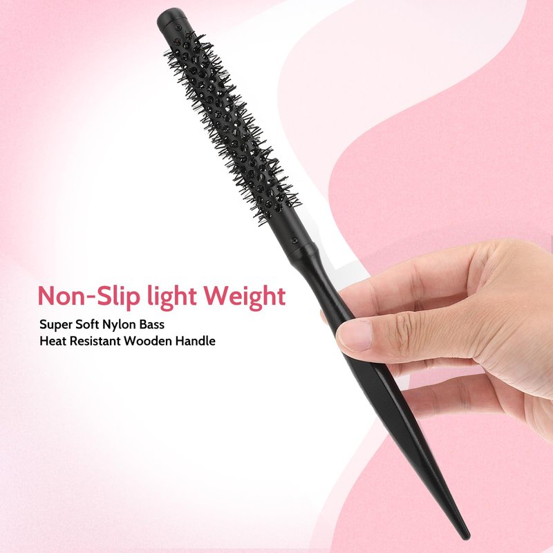 - DURABLE NYLON HAIR - The small round brush is equipped with nylon comb teeth that have good thermal conductivity. These teeth are highly resistant to breakage during high temperature spraying or cleaning, and they maintain their shape without deformation.