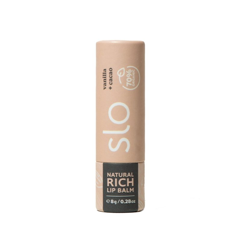 Slo | Natural Lip Balm - All Natural Ingredients, Vegan & Cruelty Free, Hydrating & Soothing, Plastic Free, Paper Packaging | Vanilla + Cacao, 0.28oz