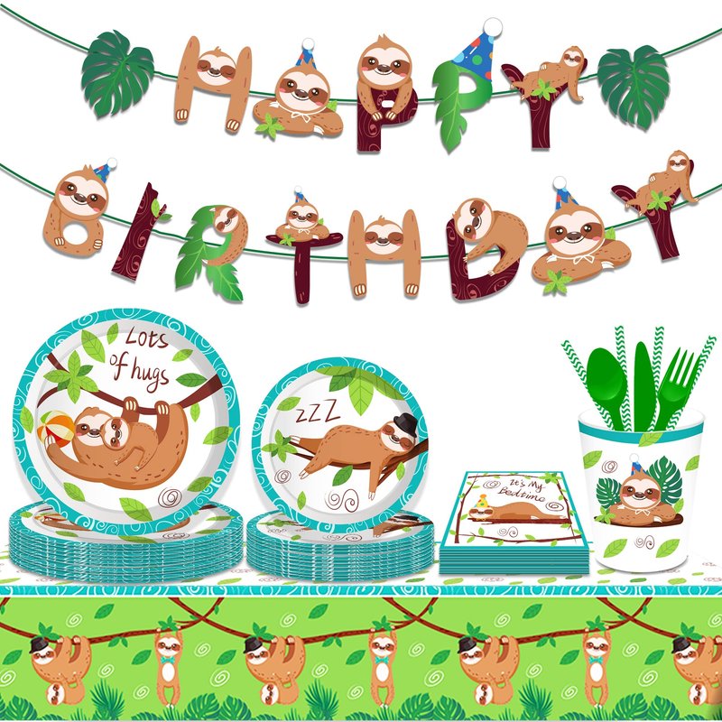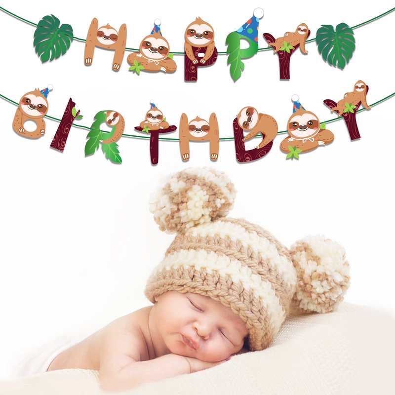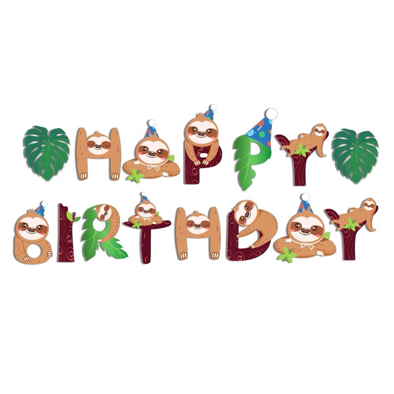 - Sloth Print Happy Birthday Party decoration: The happy Sloth Print Happy Birthday banner is great for Sloth Party decoration. The Sloth banner suitable for any deck, patio, porch, balcony backyard, lawn , even yard, outside porch and garden. Will highlight your gathering and leave a deep impression on your guests.