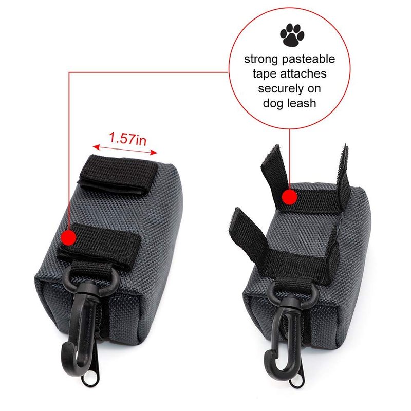 - DUAL ATTACHMENT METHODS: Attach the holder to your leash using the pasteable tapes or use the metal button to attach it onto your dog’s collar or harness. It can be a dog poop bag holder leash attachment.