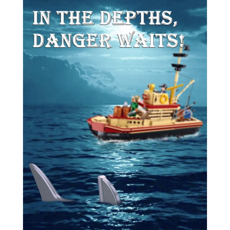 - City Jaws Fishing Boat - This fishing boat building block set is an extraordinary homage to the legendary Jaws movie, meticulously recreated to capture every iconic detail. From fishing rods and barrels to a fully equipped control room and functional propeller, this set immerses you in the thrilling world of deep-sea exploration.
