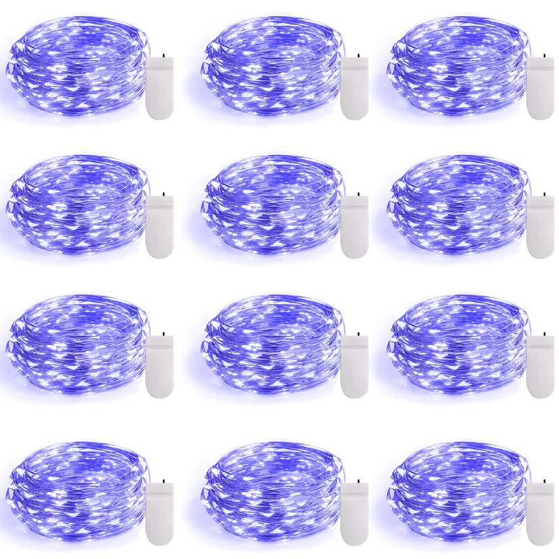 Smacen 12 Pack Black Light Fairy Lights Battery Operated UV Black String Lights Waterproof Silver Wire 7 Ft 20 Led Firefly Starry Moon Lights for DIY Glow Party Body Paint Halloween Décor