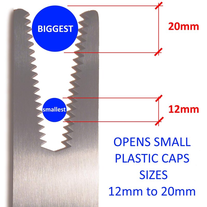 - TWIST OPEN Small Caps with Ease, Steel teeth bite firmly into Plastic
