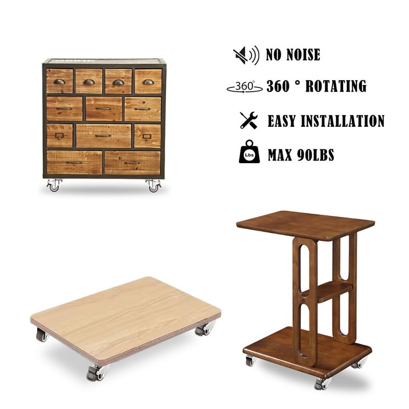 - 360 Degree Swivel: The swivel top plate of the swivel castor wheel allows for 360 degrees of rotation, and the small rubber castor wheel responds immediately to changes in direction, making it easier to turn corners, move furniture sideways, etc.