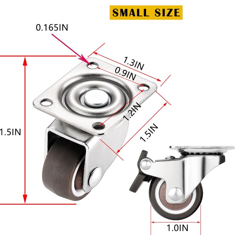 Perfect for Small Projects: With a 100-pound load capacity, these cute mini 1-inch caster wheels are perfect for small furniture moves, including dressers, crates, under-bed storage, shoe bins, toy bins, cabinets, plant stands, bookshelves, easels, etc.