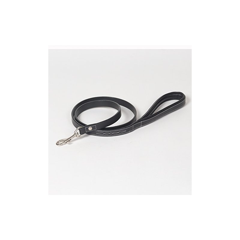 - Hand-stitched white decorative design near handle makes this leash unique and stylish! An impressive leash to complement any black leather collar!