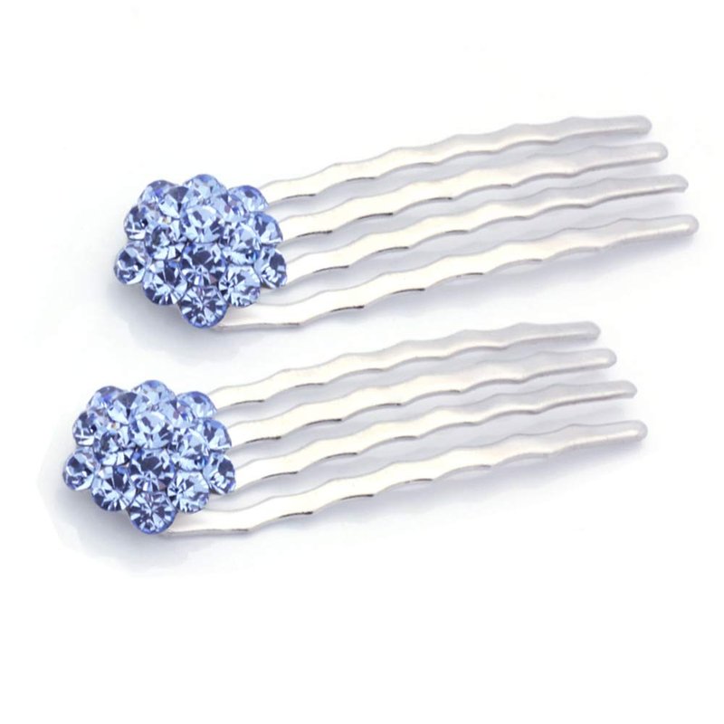 Small Decorative Hair Comb Mini Cluster Rhinestone Crystal Bridal Hair Comb, Set of Two, Blue