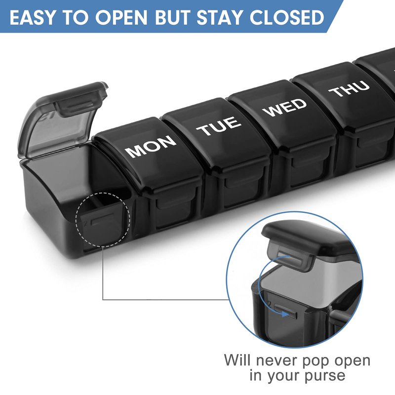 - BPA Free Pill Organizer: Our weekly pill container is made of food-grade PP plastic , safe for medical use.