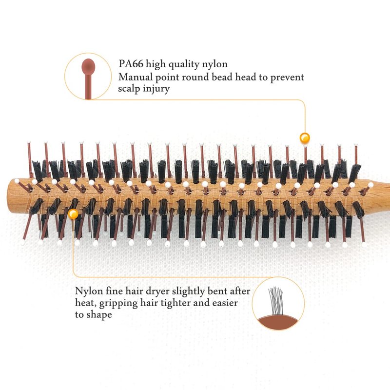 - FUNCTION:Suitable for short, medium hair, and blow-dry full hair, to increase the volume of the three-dimensional hairstyle. Point white oil round bead head, can massage scalp, stimulative scalp blood circulation.