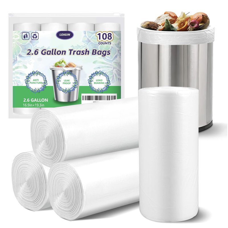 Small Trash Bags 2.6 Gallon-108 Count Leakage-Proof Strong, Small Mini Garbage Bags for Bathroom, Bedroom, Office, White Small Trash Can Liners