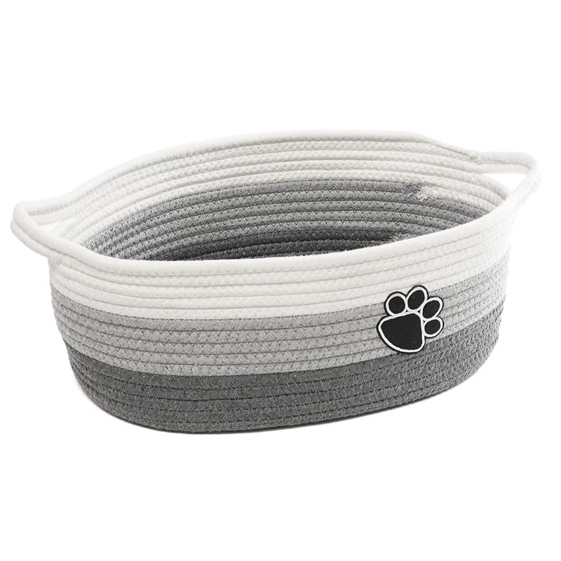 Small Woven Baskets for Organizing Rope Storage Basket with Handle Cute Cotton Basket for Nursery Gift Dog Toy Storage Bins for Toy Organizer Grey-white