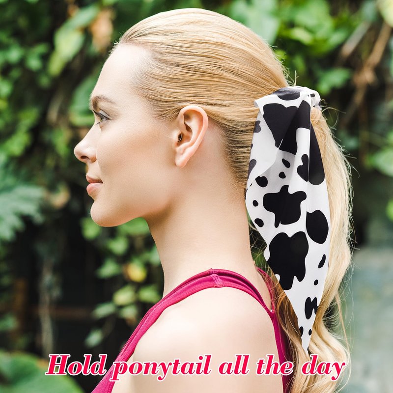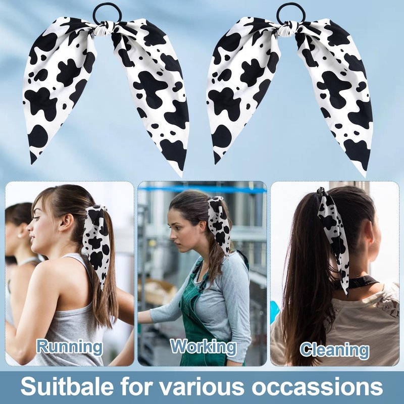SmallCat 2pcs Cow Print Hair Bands for Women, Non-Slip Rabbit Bunny Ear Bow Hair Tie Ropes Scrunchies, Elastic Bowknot Ponytail Holder Hair Bandana Accessories for Curly Straight Thin Thick Fine Hair