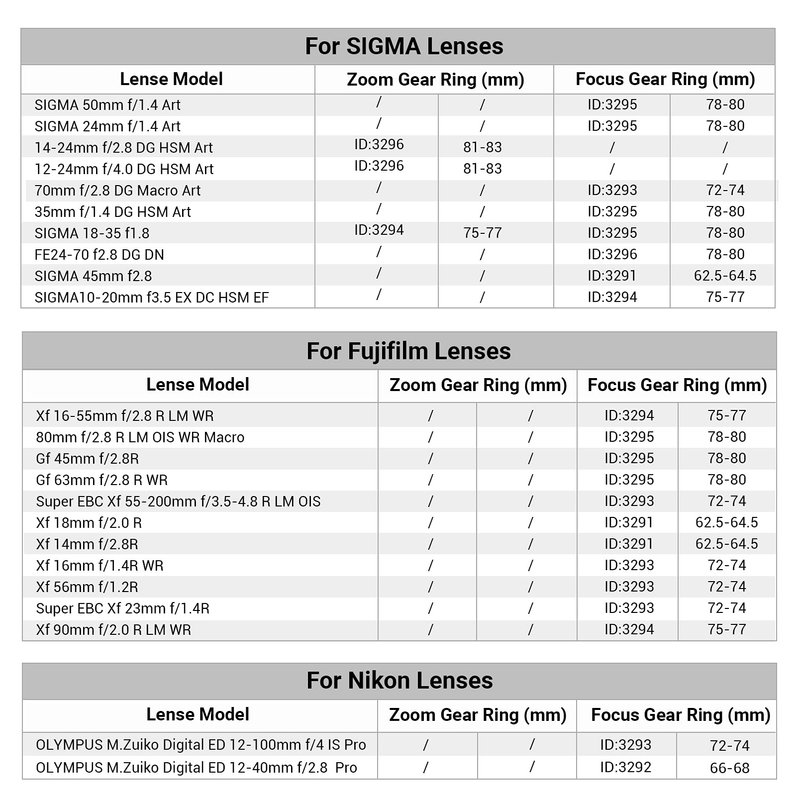 - 【RELATED ACCESSORIES】The ring 3293 can work with SmallRig Mini Follow Focus 3010 and other follow focus systems, such as Seamless Focus Gear Ring 62.5 to 64.5mm 3291, 66 to 68mm 3292, 75 to 77mm 3294, 78 to 80mm 3295, 81 to 83mm 3296.