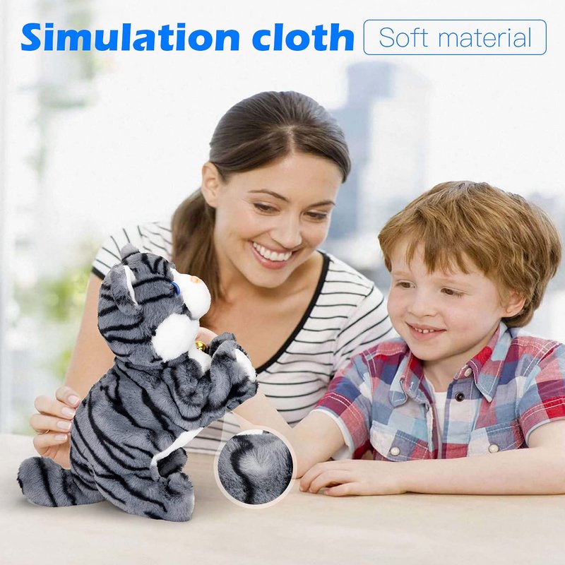 Smalody Interactive Plush Toys, Novelty Sound Control Electronic Cat Electronic Pets Robot Cat Gift for Children (Gray)