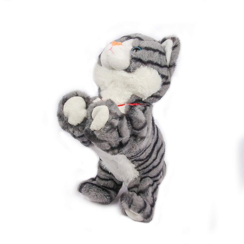 - MULTI FUNCTION & FEATURES:High quality staple cotton,so soft and comfortable,easily controlled switch, suitable for the kids to play with it.When you open the switch,the cat will stand or jump and meow when you touch it or hand clap, very interesting cat. Realistic styling, made of soft plush fabric and impeccable attention to detail.