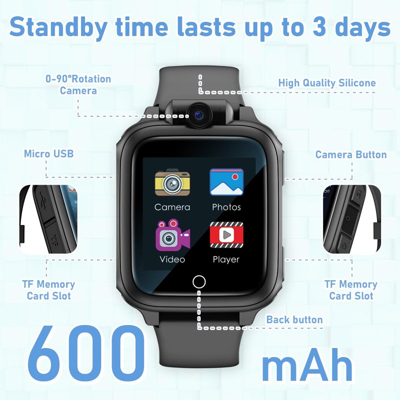 - Versatile Smartwatch for Kids: This kids' smartwatch is a multifunctional device featuring a rotatable camera, HD touch screen, 26 interactive games, a music player, and a flashlight. No need for a smartphone connection, making it easy for children aged 4-12 to explore and learn independently