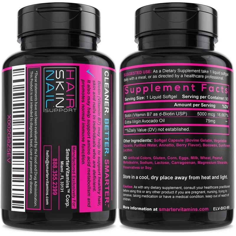 - Includes 1 Bottle of SmarterVitamins Biotin 5000mcg for a total of 90 Liquid Softgels for Natural Hair, Skin & Nail Metabolism Strength Support.