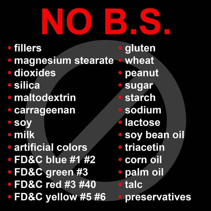 - Made SMARTER in the USA without Bad Stuff such as fillers, Magnesium Stearate, Dioxides, Maltodextrin, Carrageenan, Soy, Milk, Egg, Corn, Tree Nuts, Artifical Colors or Preservatives.
