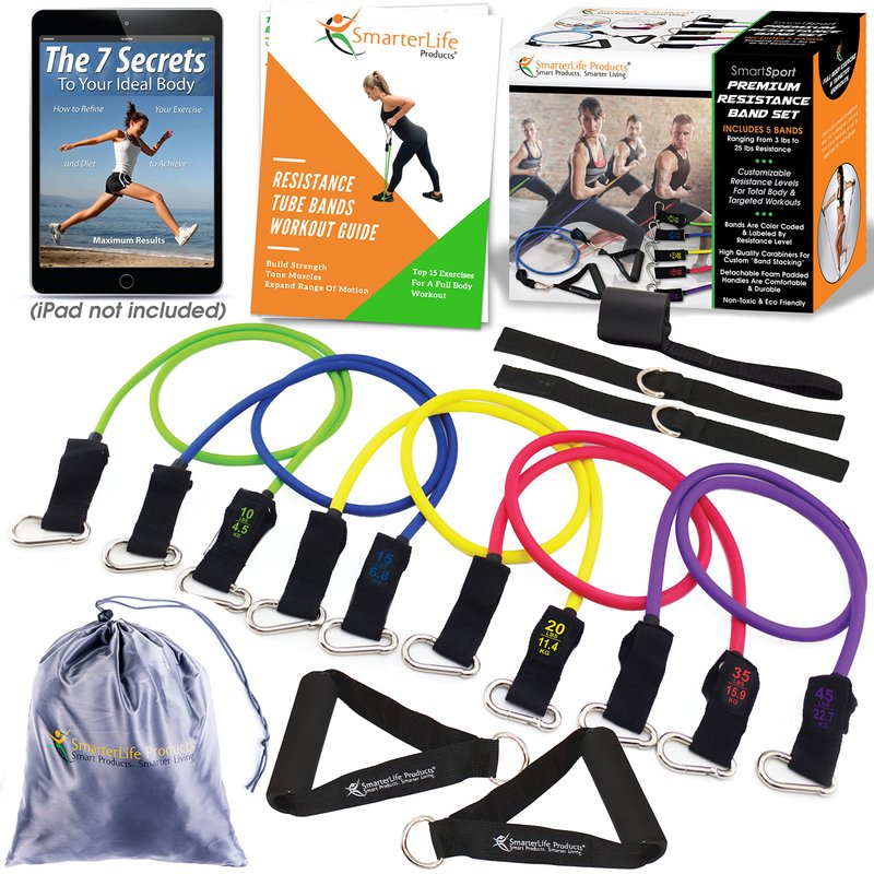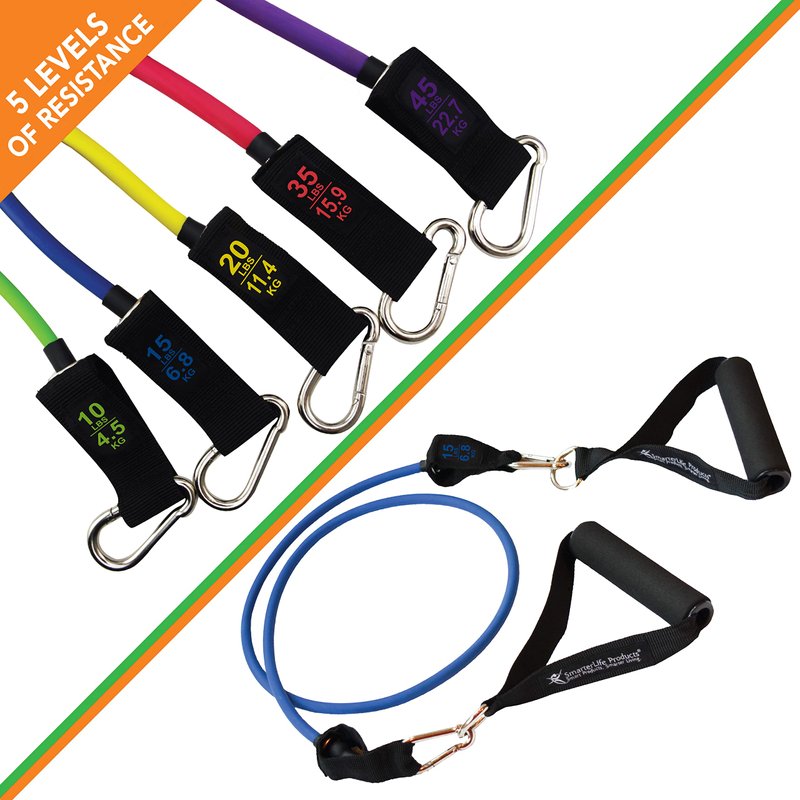 SmarterLife Resistance Bands for Working Out, Physical Therapy - Workout Bands for Women, Men - Tone Arms, Legs, Chest, Booty - 5 Exercise Bands with Handles, Ankle Straps, No-Slip Door Anchor, Bag
