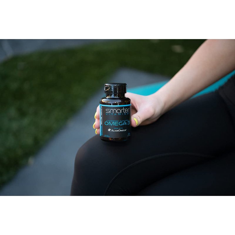 SmarterVitamins Omega 3 Fish Oil, Strawberry Flavor, Burpless, Tasteless, 2000mg, DHA EPA Triple Strength Brain Support, Joint Support, Made with AlaskOmega®, Heart Support