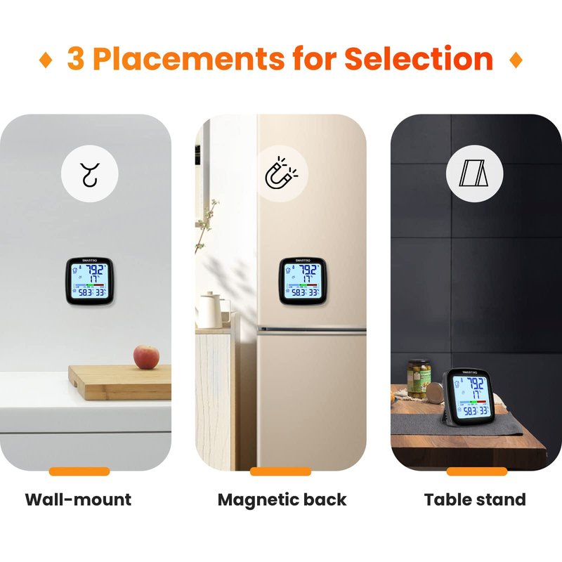 - ✨|| Built for Anywhere || The SC92 humidity monitor, with its retractable stand, magnets and wall-mount, can be adapted for any placement almost anywhere. It can be put in the baby’s room, closet, incubator, greenhouse, garden, nursery, wine cellar, office, basement or critter terrarium: No corner is too dark or awkward.