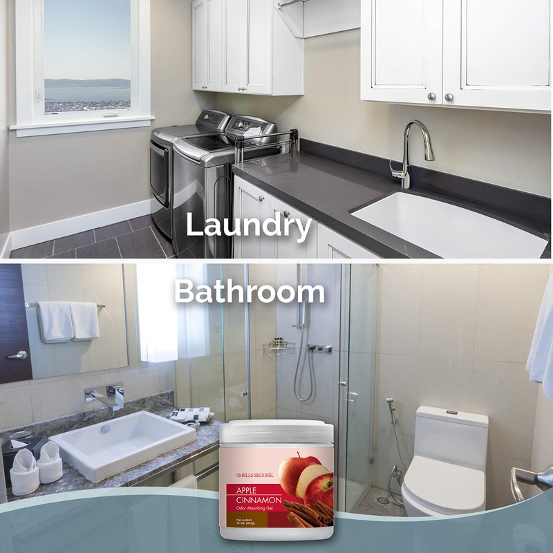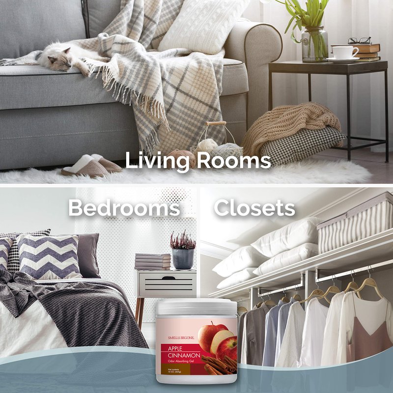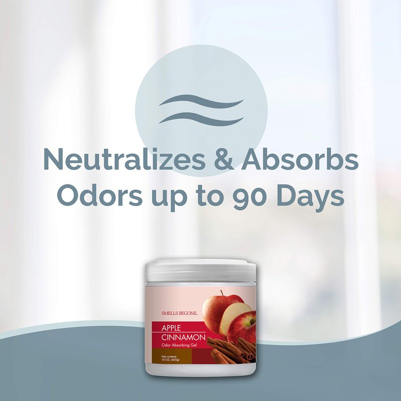 SMELLS BEGONE Air Freshener Odor Absorber Gel - 15 oz, Pack of 2 - Absorbs and Eliminates Odor in Pet Areas, Bathrooms, Cars, & Boats - Made with Essential Oils - Apple Cinnamon Scent