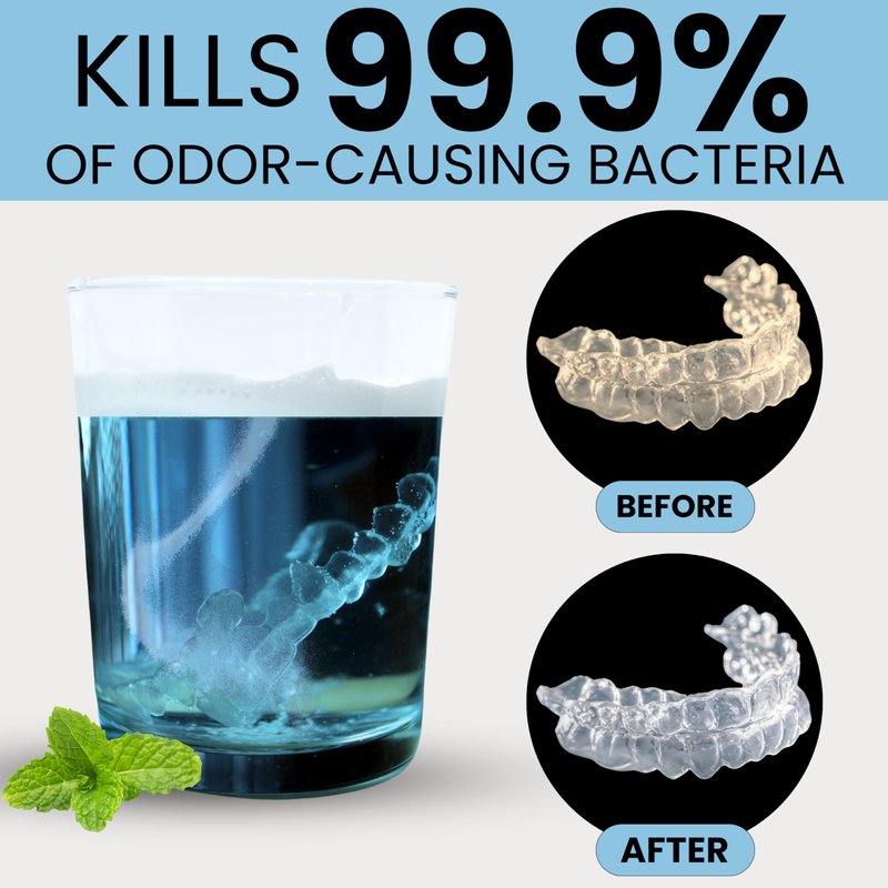 - Easy to use — Stir one mint flavored cleaning crystals packet in a container of warm water and allow the solution to dissolve for three minutes; soak dental appliance for 20 minutes and then rinse under running water. Use a brush and ultrasonic bath for increased cleaning efficiency.