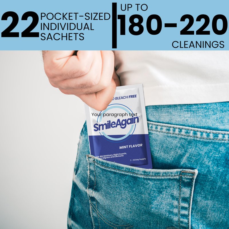 Smile Again Retainer Cleaner | 180 Cleanings (22 Pack/6 Month Supply) | For Clear Aligners, Dentures, Retainers, Mouth Guards & Night Guards - Cleaning Crystals, Mint