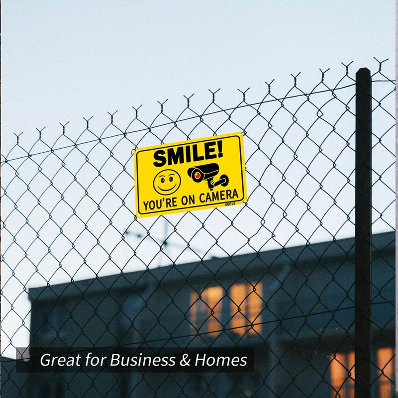 - 🌞Clear Warning: The eye-catching yellow color and the clear 'SMILE! You're on Camera' text ensure it's easily readable and understood.