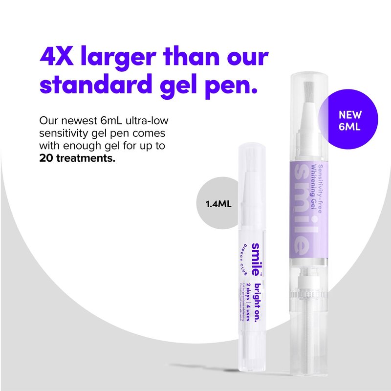- 1 Sensitivity-Free Whitening Gel Pen – 6mL which includes up to 20 treatments. Cool mint flavor. Vegan. Gluten-free.