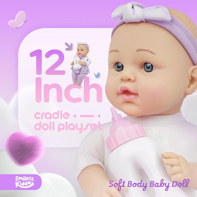 - Beautiful Design And Matching - The 12-inch quilted soft doll clothes are beautifully designed, and the pillow edge lace design. With the baby doll bottles, cute blanket and cradle, the bright purple color is unique and gives your child a full sense of surprise.