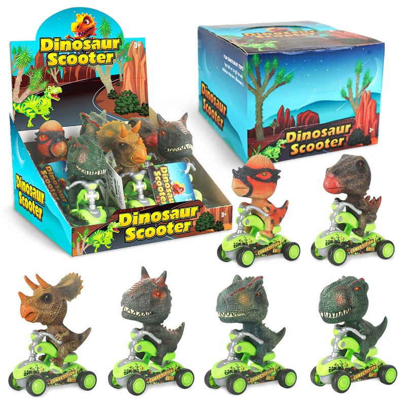 - Dino Pull Back Cars - Dinosaur scooter toys are designs with pull-back car function, just pull it back and let go, them it will go forward automatically. 4 rubber wheels design built to provide a smooth and steady ride.