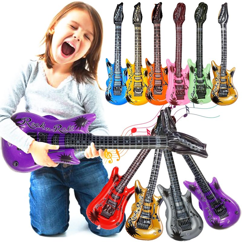 - Inflatable Party Props: You will get 11 inflatable toys, including 10 inflatable guitars and 1 inflator. Let's play these inflatable rock band instruments and start a fun learning experience