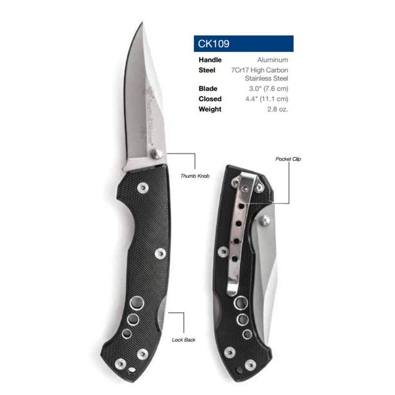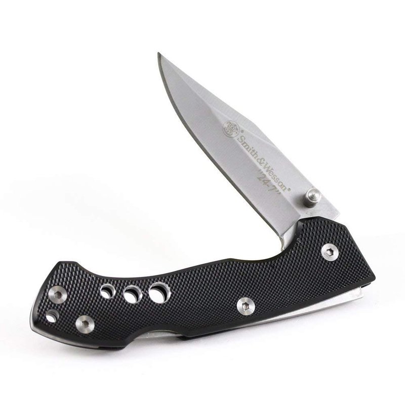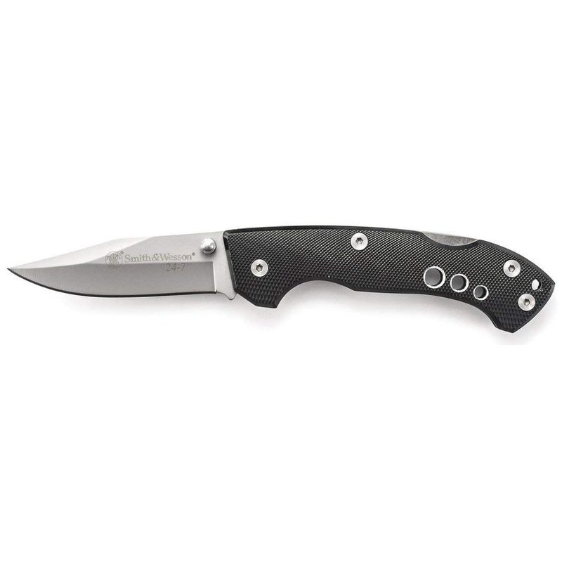 Smith & Wesson 24/7 CK109 7.4in High Carbon S.S. Folding Knife with 3in Clip Point Blade and Aluminum Handle for Outdoor, Tactical, Survival and EDC