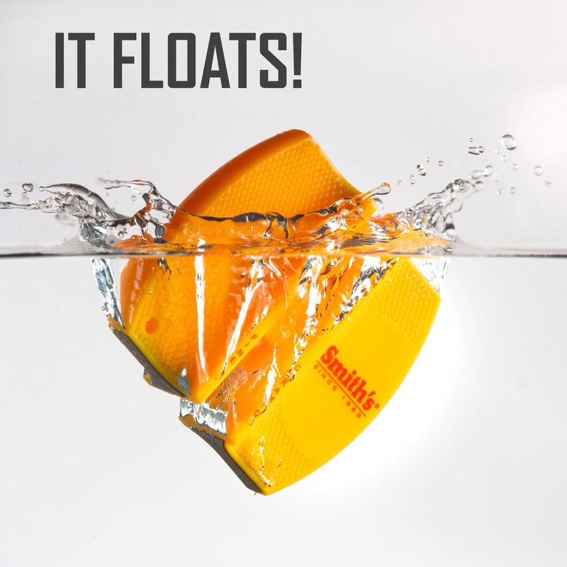 - FLOATS – Smith’s 2-Stage Sharpener is perfect for all your hunting, fishing, and outdoor adventures and it even floats in water! The compact sharpener features non-slip rubber feet for added safety during use and can easily be cleaned with a damp cloth.