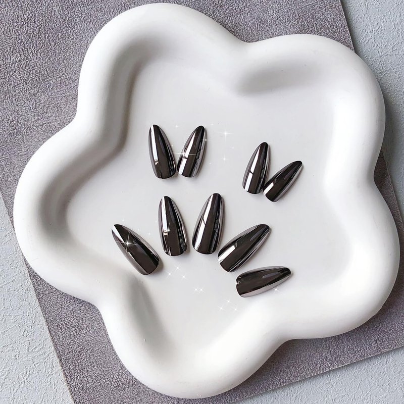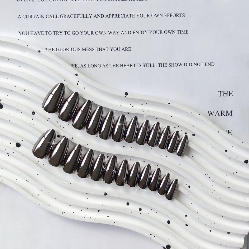- ❤️【Authentic Beauty from Real Nail Polish】Our metallic black press on nails stilettos are crafted with genuine nail polish gel.Elevate your unique personality with our natural bling stick on nails for women.