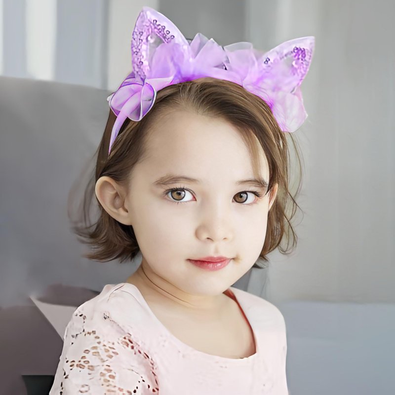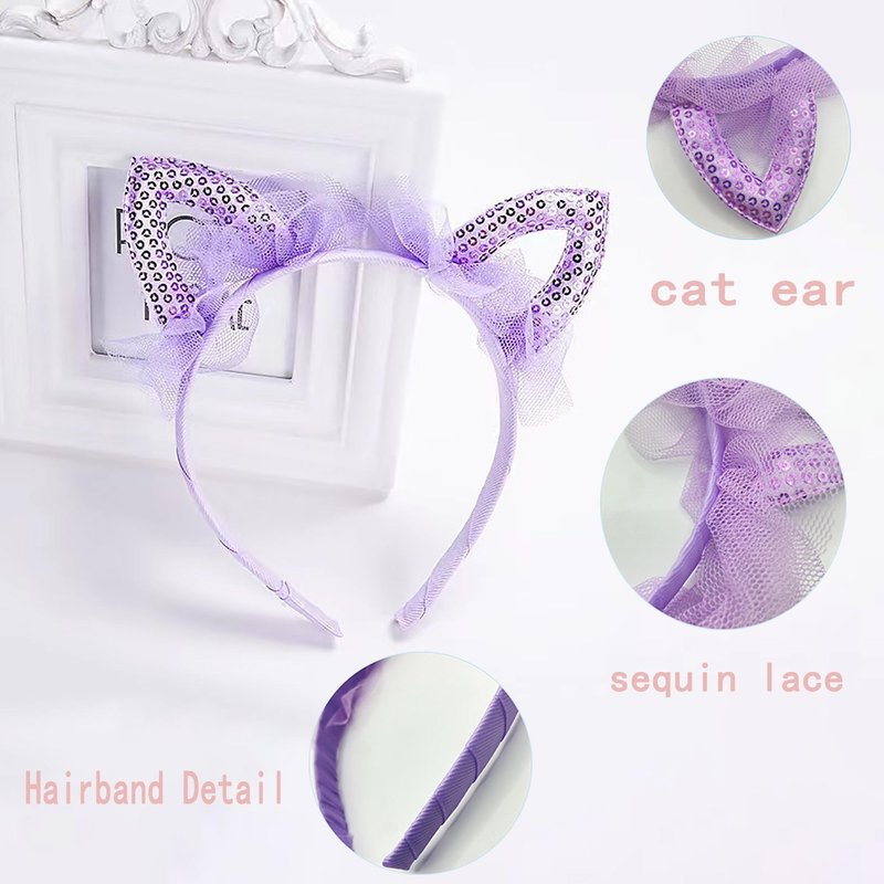 SMYAXUNW Pretty Girls Sequins Lace Cat Ears Hair Bands Little Princess Cute Cat Ears Mesh Cute Ears Elastic Hair Clips Girls Hair Accessories Hair Bands(blue)