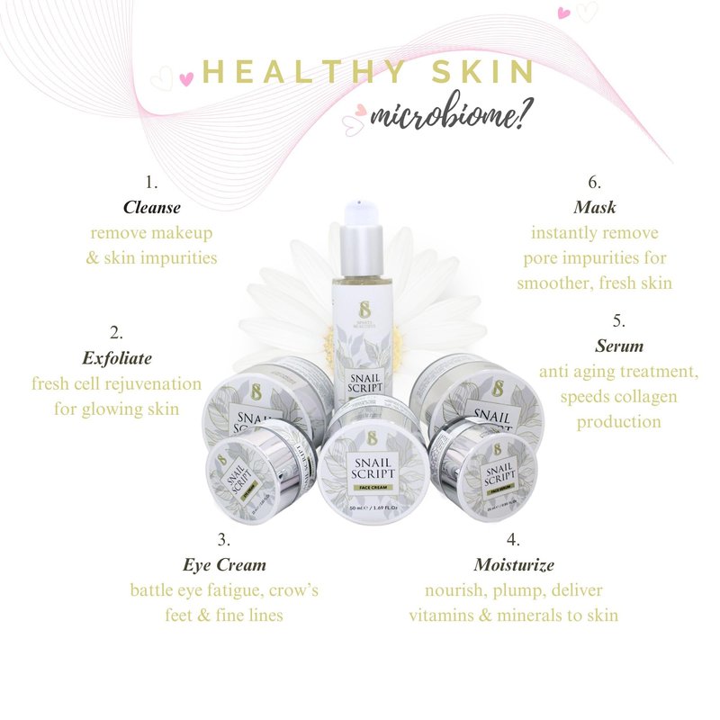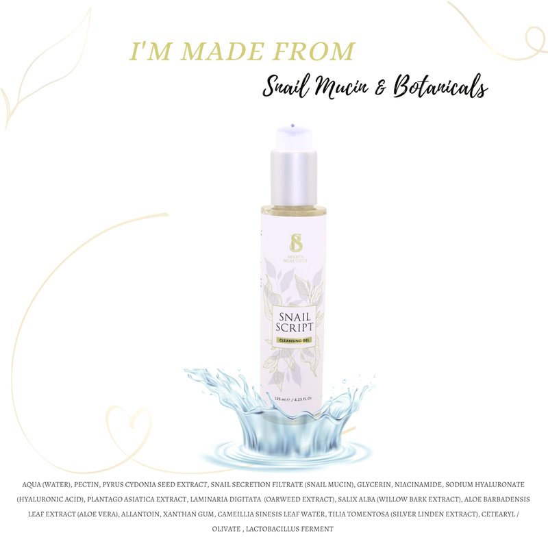 SNAIL SCRIPT Cleansing Gel, 125 ml made from Snail Mucin infused with wildcraft pure botanicals to rejuvenate, cleanse, sooth, clean impurities, tighten, brighten & plump skin from daily enviornmental stress for radiant skin Microbiome powered by peptides, vitamins and botanicals. 100% ORGANIC & NATURALLY DERIVED unique Phyto-powered botanical ingredients from the European mountains primed in snail mucin and wildcrafted for skin through Mother Nature - pure goodness is what you’re feeding your skin. A PROMISE TO YOU that our luxurious skincare products activate radiant, brighter, healthier, more youthful appearing complexion through blends that restore and nourish skin. WE USE ETHICALLY HARVESTED snail mucin through cruelty-free open net farming environment supporting happy, healthy snails that produce “Liquid Gold” for skin. FOR ALL SKIN TYPES Snail Script is 100% natural, comedogenic, zero mineral oils, synthetics or preservatives - no worries about clogged pores, harsh or irritating results, our products are Dermatologist approved and the preferred natural skincare line.
