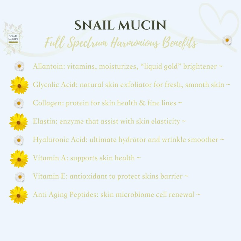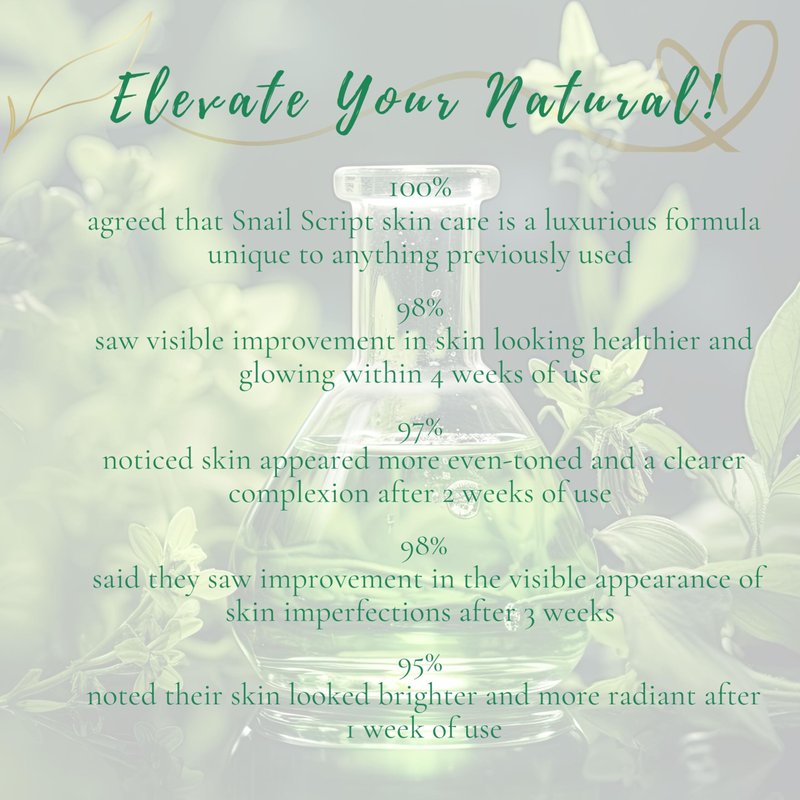 - 🌿 SUITABLE FOR ALL SKIN TYPES Snail Script is 100% natural, zero mineral oils, comedogenic without preservatives or synthetics, Dermatologist approved and the preferred natural skincare line.