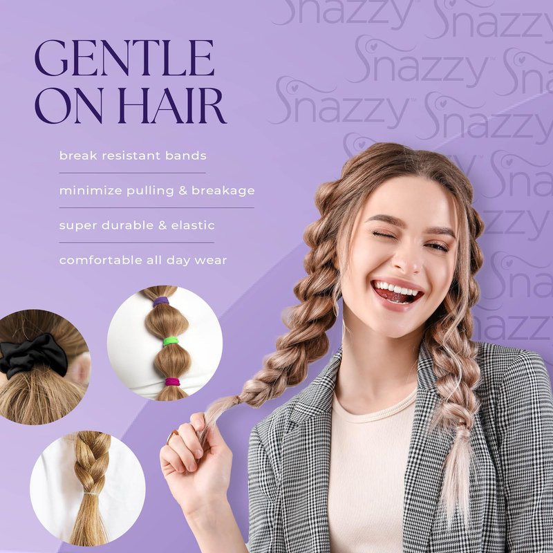- COMFY & DURABLE - We use hair friendly materials that don't snag or snap when braiding or tying hair back. The small polyband elastics are the perfect hair accessory for braids and other show stopping hair styles. The ponytail holders and silky soft mini scrunchies are great for daily wear day or night.