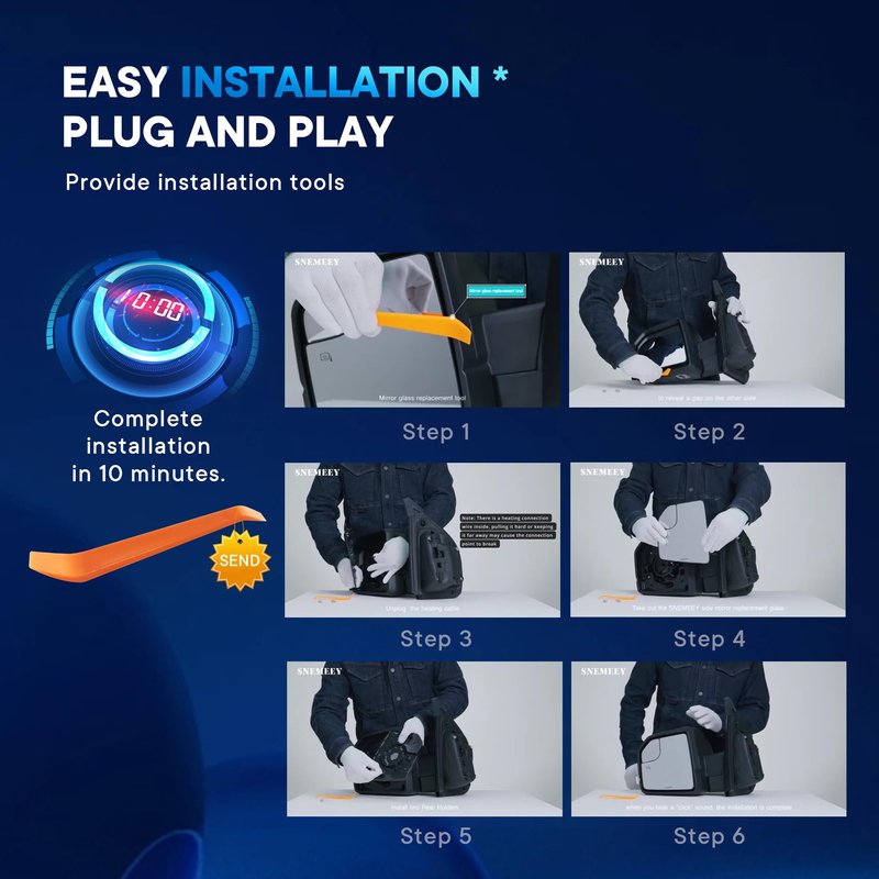 • 【Fit firmly】The backing plate is made of durable ABS material, and the mirror glass is firmly attached to the ford f150 view mirror assembly, even after the speed reaches 65-80 MPH, side view mirror is stable