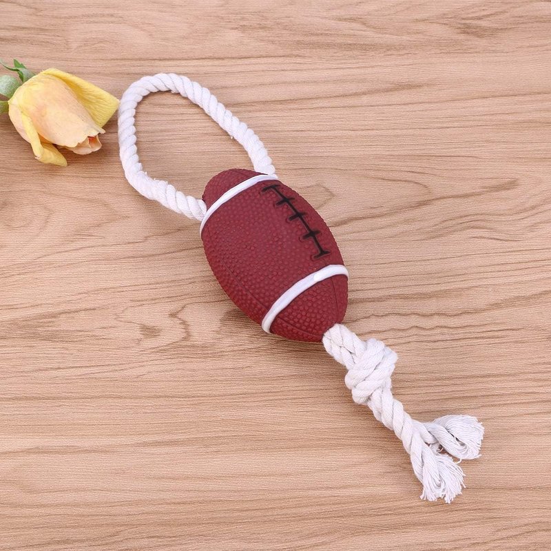 A rope rugby ball toy for dogs is a type of interactive toy designed to provide mental stimulation and physical activity for your furry friend. It typically consists of a rugby ball-shaped rubber or plastic toy with a rope attached to it for easy throwing and tugging. The rope rugby ball toy is great for playing fetch, tug-of-war, and other interactive games with your dog. The rope handle also makes it easier for you to throw the ball further and play for longer periods of time without getting tired. The toy can also help satisfy your dog's natural chewing and play instincts, promoting dental health and reducing boredom and destructive behavior. However, always supervise your dog while playing with toys and regularly check for any signs of wear and tear to ensure their safety. It's also important to choose the appropriate size of toy for your dog, based on their breed and size, to prevent choking hazards. This pet toys are perfect for stimulating your dog's interest and keep dogs busy and happy or simply enjoy the kind of quality play that improves your bond with your pet friend. Guaranteed to you and your dogs hours of fun.Not for aggressive chewers. Toy balls for Small, Medium and Large Dogs Playing and Making Fun. This toy suitable for any occasion. Great for bouncing, shaking, tossing and retrieving.