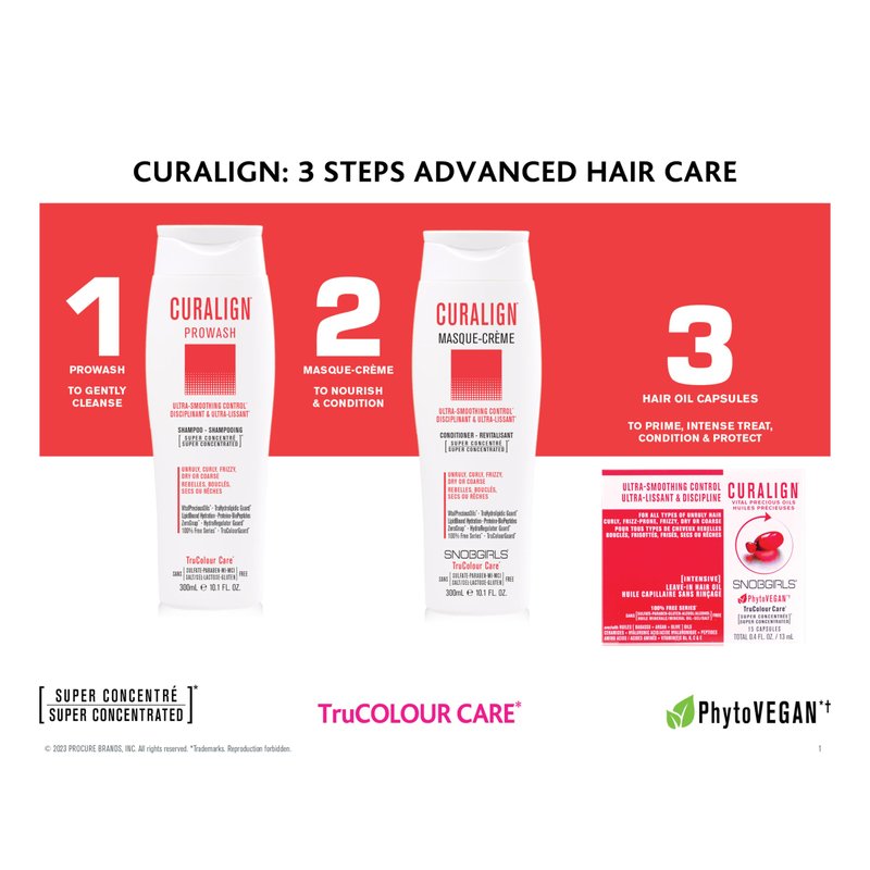 Curly hair shampoo This 100% Free Series* TruColour Care* super concentrated color-preserving shampoo is Free of harsh Sulfates, Parabens, Salt, Lactose and Gluten free. Its luxurious lather gently cleanses and helps nourish, revitalize, care and protect by deeply infusing color-treated hair and scalp with rich 100% VEGAN Nourishing Systems. TruColourGuard* anti-fading system helps seal, protect, revive and prolong hair color purity, radiance and vibrancy of color-treated hair. Helps protect and defend against the damaging effects of heat, styling, harsh chemicals, UVA/UVB and pollution. Helps detangle and prevent hair breakage, frizz, static, and split ends. Helps soothe scalp. HydraRegulator Guard* locks in vital moisture and locks out excess humidity. Lightweight formula helps hair look and feel fresher longer. Hair Thermo-Protection. Curalign* Weightless System deeply nourishes and helps repair, condition, strengthen, protect, hydra-regulate, tame, control, ultra-smooth and visibly transform any type of unruly hair into manageable smoothly aligned hair. Helps close, seal and polish lifted cuticles to a highly reflective smooth surface, locking in hydration, pure hair color vibrancy, luminous shine and long lasting anti-frizz smoothness. HydraRegulator Guard* locks in vital moisture and locks out excess humidity. Hair is left sleek, silky soft with manageability and discipline, revealing long lasting style retention, frizz control, weightless elegance in movement and healthy shiny youthful looking results. Sulfate free shampoo, Shampoo for color treated hair. Vegan shampoo Salt free