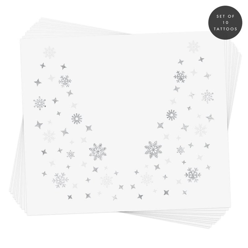 SNOWFLAKE EYE JEWEL set of 10 premium waterproof metallic silver and white snowflake temporary jewelry foil face Flash Tattoos - Party Favors, Party Supplies, Holiday parties, snow, winter party