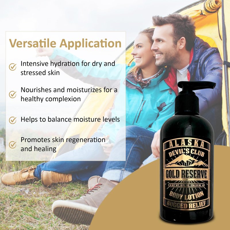 - Intensive hydration & relief: Our body lotion is expertly formulated with Alaska Devil's Club Oil and a signature blend of natural ingredients like Arnica and Hyaluronic Acid, offering deep moisturization and soothing relief for joints, muscles, rashes, and insect bites.