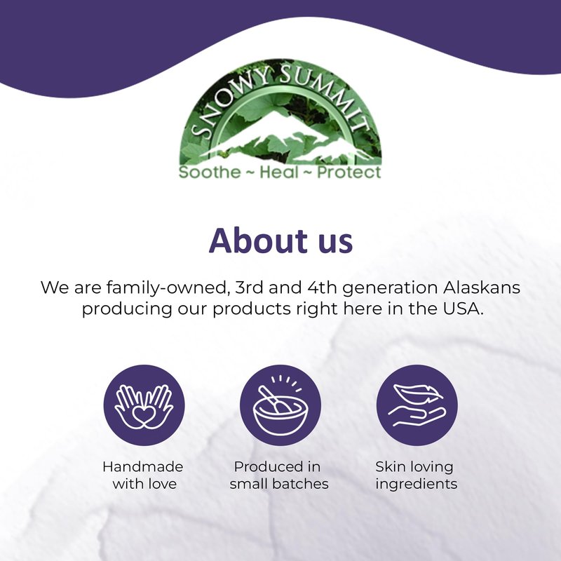 Snowy Summit is not just a brand; it's a testament to the power of nature and dedication. Handcrafted with precision, our hand and body lotion echoes the promise of purity, fresh from the vast landscapes of Alaska. Entrusted in the hands of the 3rd and 4th generation Alaskans, every batch of this herbal body lotion crafted is a blend of tradition, authenticity, and unmatched quality. Dive deep into a legacy, where each body lotion pack narrates a story of nature's marvel and meticulous craftsmanship.