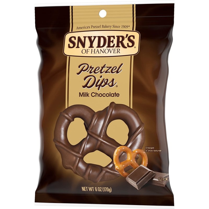 - CHOCOLATE COVERED PRETZELS: Snyder's of Hanover Mini Pretzels covered in milk chocolate for a deliciously sweet combination