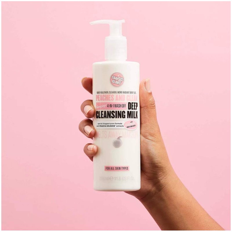 Soap and Glory Peaches and Clean Deep Cleansing Milk 11.8 ounce / 350 milliliter bottle.