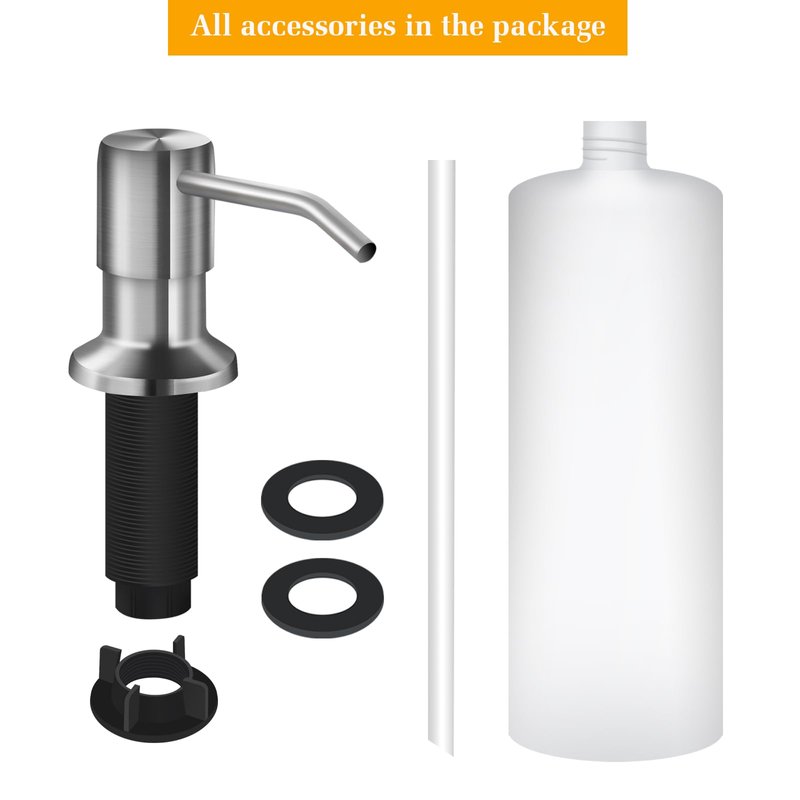 - COMMERCIAL GRADE MATERIAL: This kitchen sink soap dispenser is made of durable 304 stainless steel and PE plastic. This soap dispenser pump head possesses long-lasting performance and can survive over 5000 press tests. Not only waterproof, and is perfect for damp environments.