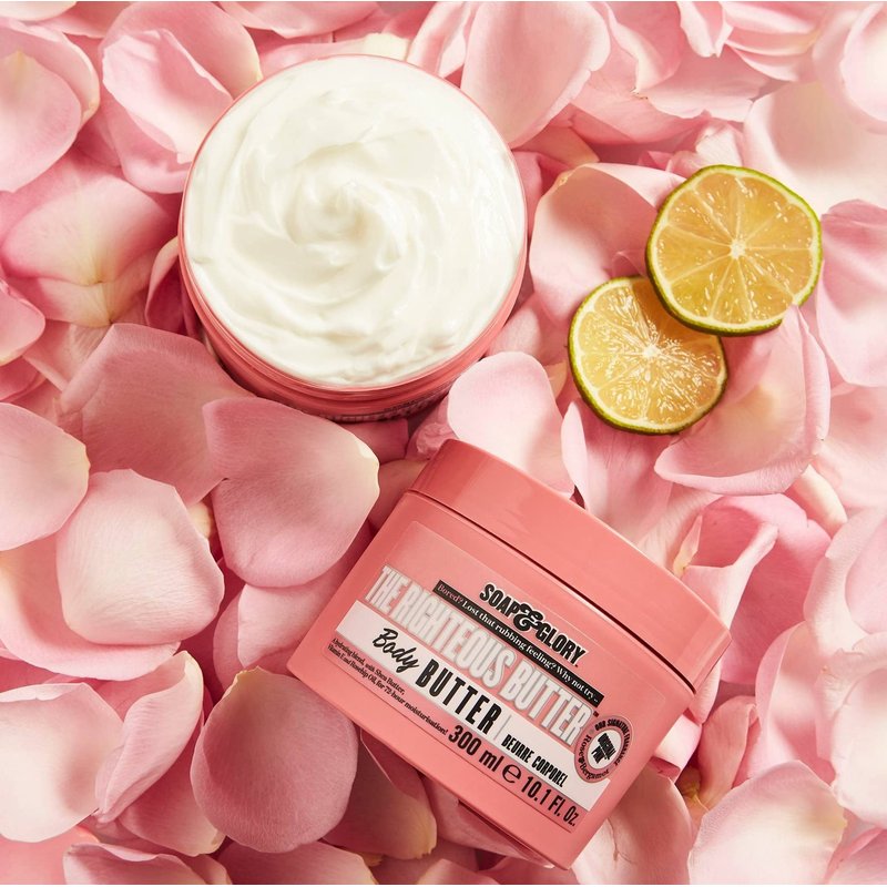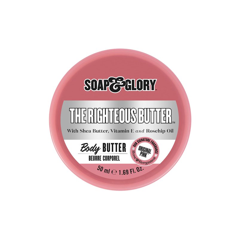 Soap & Glory The Righteous Butter Moisturizing Body Butter - Skin Hydration Body Moisturizer with Vitamin E, Rosehip Seed Oil & Shea Butter - Rich Body Cream for Soft & Smooth Skin (50ml)